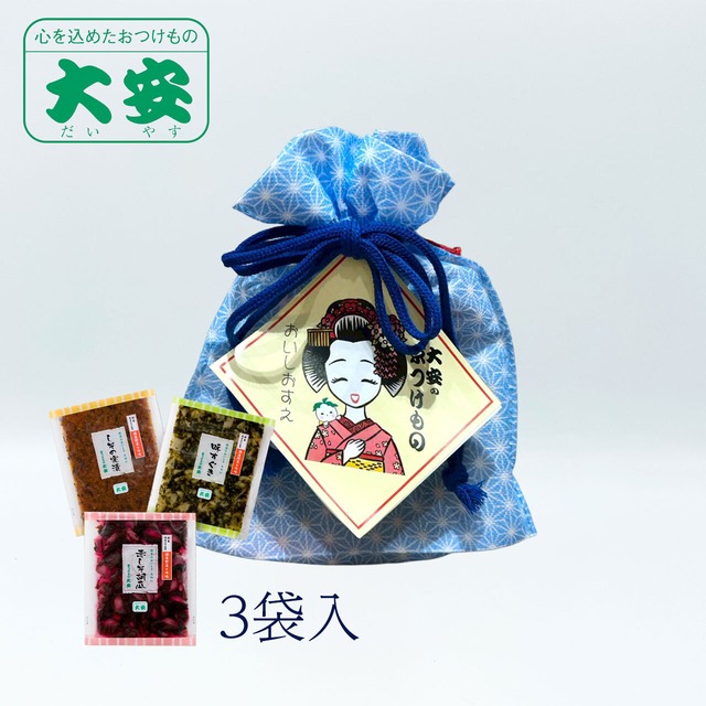 京つけものおみやげ袋(3袋入オレンジ)【大安】