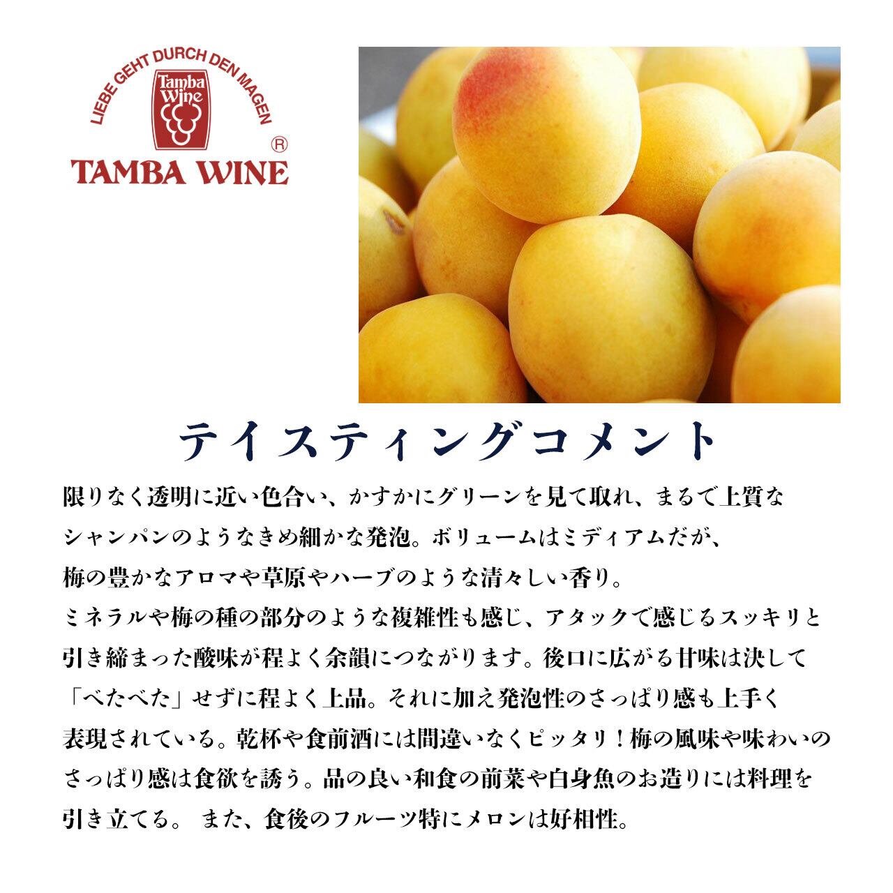 京都青谷の城州白梅を使用したスパークリングワインです。梅を原料としながらも、まるで寒冷地のドイツワインを思わせる高貴な味わい。青梅の豊かなアロマと若草のようなすがすがしいニュアンス。ミネラルの風味を感じ、軽快な酸味とボディを備えています。白身魚のムニエルや白味噌漬けなどと相乗します。