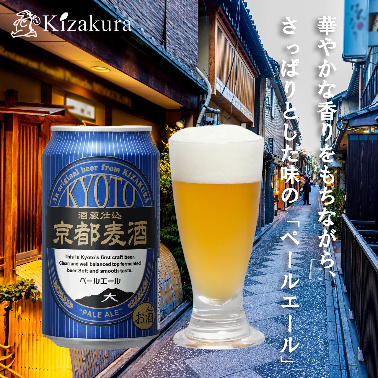 京都麦酒は、1995年京都で初めての地ビールとして誕生しました。清酒メーカーが作る地ビールとして清酒製造技術を生かして醸造しています。その1つである「ペールエール」は、お酒の仕込にも使われる名水「伏水」を使い、淡い黄金色をした華やかな香りとさっぱりとした飲み口が特長の缶ビールです。