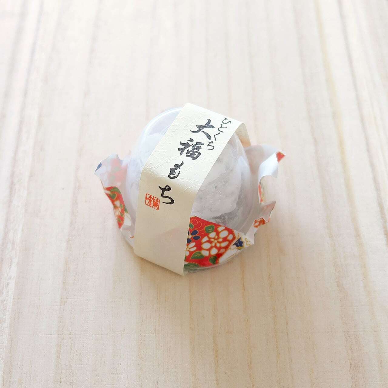 千代紙を女性に人気の和柄に変更し、さらに気持ちの伝わる商品に変身しました。美味しさと賞味期限の長さを両立する一口サイズの大福餅です。製造の際、水分量を徹底管理することで90日の賞味期限が実現されます。餡を餅で包む専用の機械を使い1分間に約41個製造できます。その他の味付けなどの工程は全て職人の手作業で行っています。観劇の合間にポイッと映画の途中でポイッと口にほうり込めるサイズです。お客様の声で出来た商品。食べやすい一口サイズ